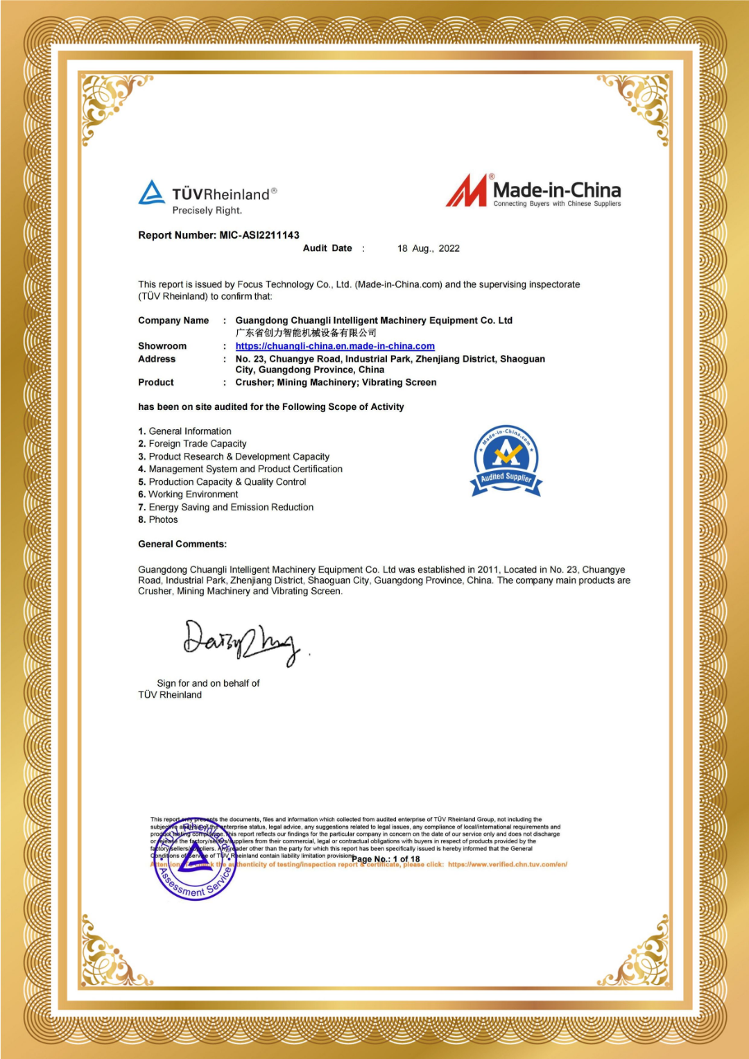 經(jīng)過(guò)TüV國(guó)際機(jī)構(gòu)的實(shí)地審核,中國(guó)創(chuàng)力的銷售貿(mào)易能力和產(chǎn)品設(shè)計(jì)開發(fā)能力、體系和產(chǎn)品認(rèn)證、生產(chǎn)能力和質(zhì)量管理、實(shí)景照片等內(nèi)容得到TüV國(guó)際機(jī)構(gòu)認(rèn)證。