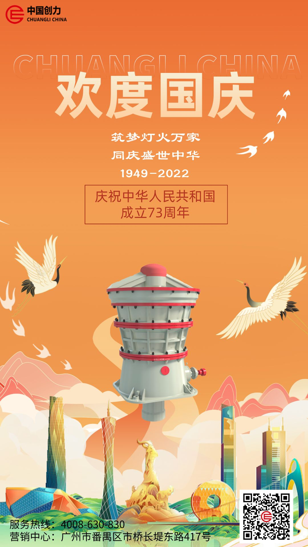 國慶佳節(jié)舉國同慶,創(chuàng)力祝愿我們偉大的祖國永遠繁榮昌盛,也愿好運、健康伴您一生!